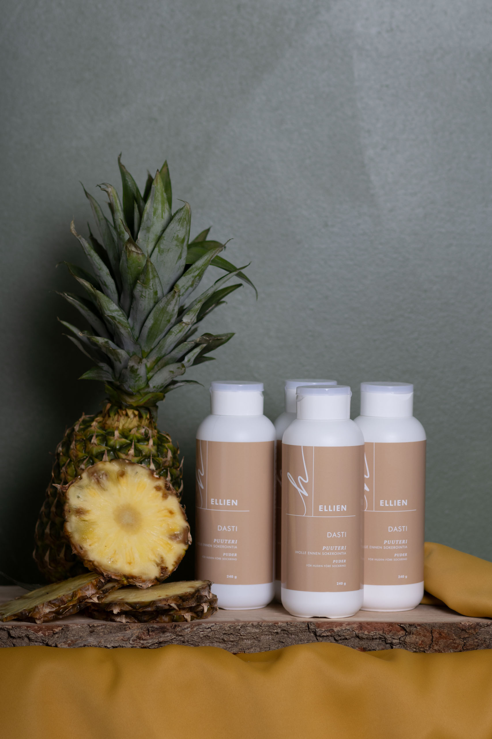 Porilaist ihmepölyy. Dasti o kaoliinisavipohjane puuteri iholle ennen sokerointia. Yhdes Kaoliini ja Magnesiumcarbonaatti o takuuvarmoi kosteudeimijöit ilma paakkuuntumist taik iho tukkeutumist.